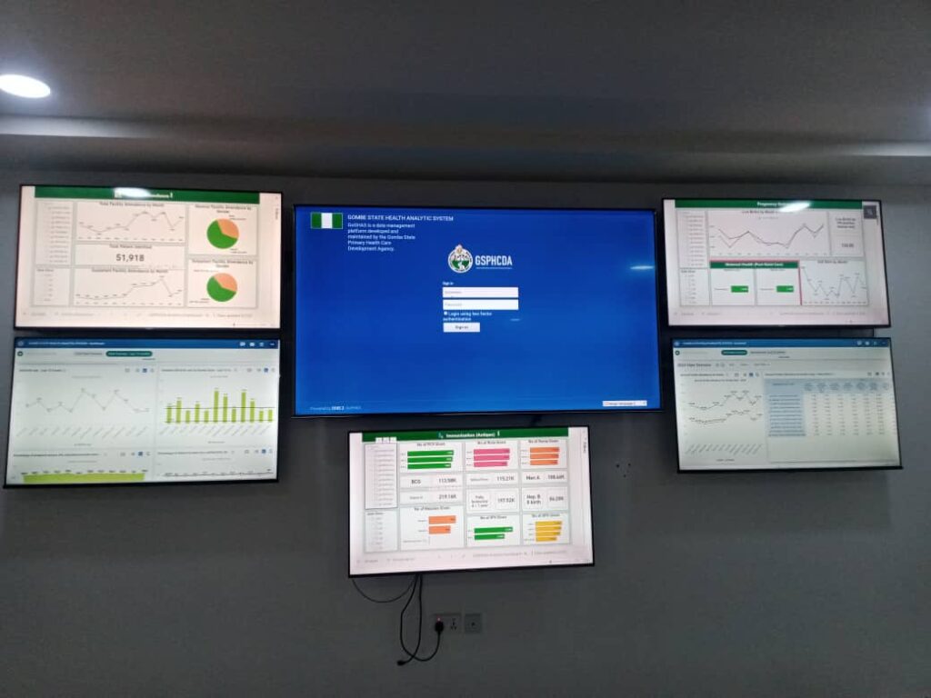 The Gombe State Data Management Project involves establishment of a central Data Control Room (DCR) at the Gombe State Primary Health Care Development Agency (GSPHCDA) & State Bureau of Statistics (SBS). This initiative supports the state in tracking, integrating, and analyzing multiple major data sources, including the National and State DHIS, into central location to facilitate data-driven decision-making in the healthcare and other sectors. Data is visualized in different dashboards.
